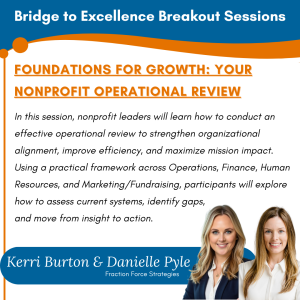 In this session, nonprofit leaders will learn how to conduct an effective operational review to strengthen organizational alignment, improve efficiency, and maximize mission impact.